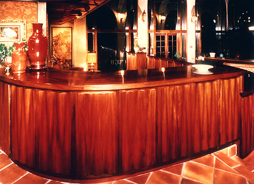 This cabinet accommodates three different floor levels and serves as an integrated library, electronic entertainment center and storage unit